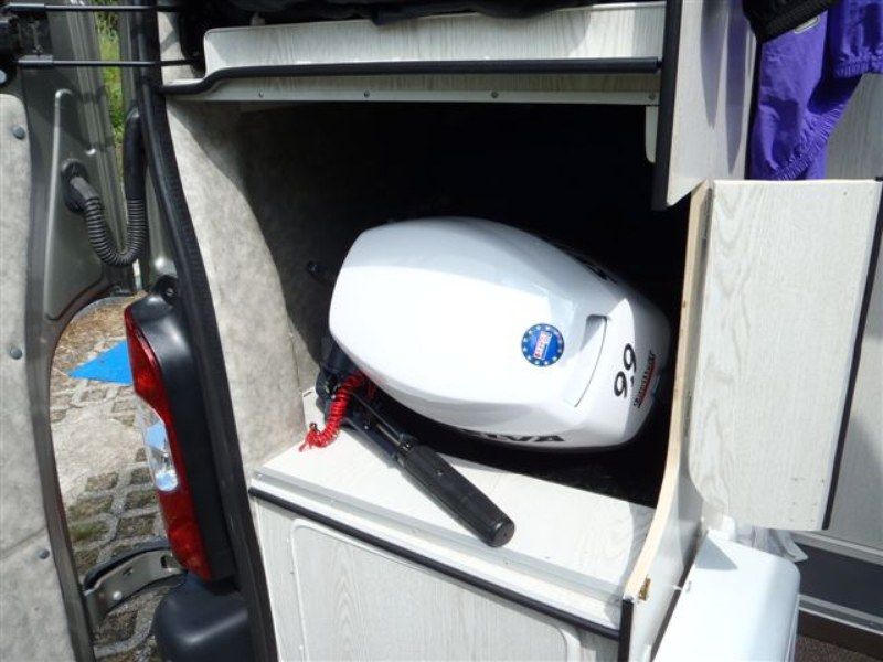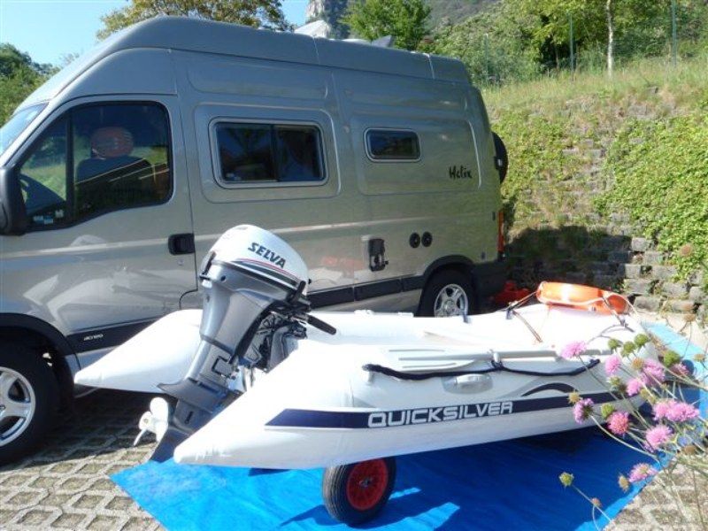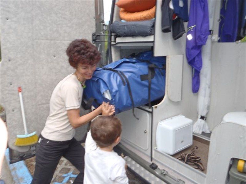 Caricare un gommone nel gavone di un Helix Camper