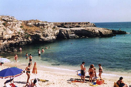 | C/o Santuario Madonna della Scala; a 6 km camping 'Verdemare', pineta. | N 40,601 E 17,113 | Portolano 93