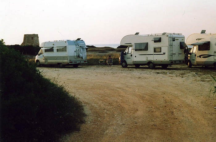 Servizi igienici uomo, donne e disabili docce calde a pagamento, barbecue, 2 lavapiatti, 1 lavabo, 1 lavatrice, camper service.. | N 40,308 E 17,677 | Arcangelo Romano, 1/7/2007; Francesco Pozzani, 16/7/2007: comoda al mare e al centro, non ombreggiata, parco giochi e bar non ancora operativi; Donatella Cuna, 25/9/2007: a Settembre è desolatamente chiusa; Salvatore Giunco, 26/5/2008; Roberto Matteoni, 5/8/2008: molto arrangiata, poca ombra, molta polvere, non sul mare; Mikele Larato, 20/8/2008: non proprio vicina al mare, molto affollata; Serena Trevale, 24/8/2009: non ombreggiata, polverosa, cs comodo, docce sufficienti anche se le calde a gettone, attacchi corrente e carico acqua su ogni piazzola, sito archeologico subacqueo a 30 mt dalla spiaggia con sarcofagi romani perfettamente conservati, acqua trasparente. Da vedere; Barbara Guida, 25/8/2008: polverosa, molto in pendenza, lontana dal mare, mal servita, pochi i servizi per 80 camper;