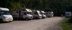 | Parcheggio comunale su asfalto, illuminato con pozzetto di scarico, carico acqua potabile a pagamento, punto unico di allaccio elettrico nell'area service (serve un cavo lungo).