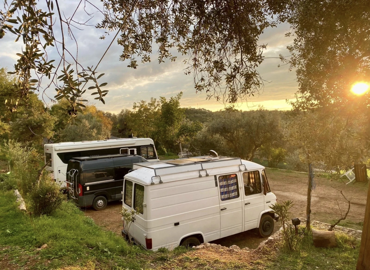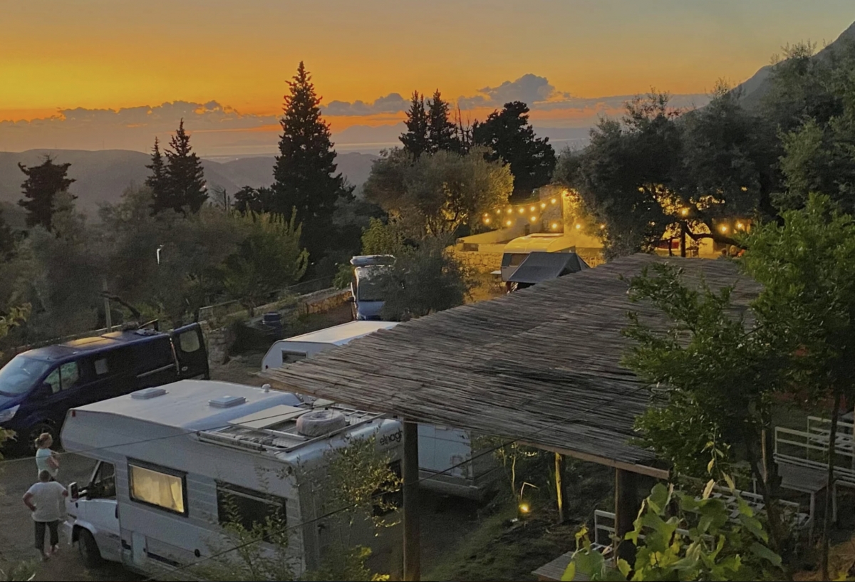 A soli 1,5 km dal centro e dal castello, area sosta a conduzione famigliare con camere private su richiesta e piazzole ombreggiate, in piano e con vista panoramica sulla valle di Tirana.