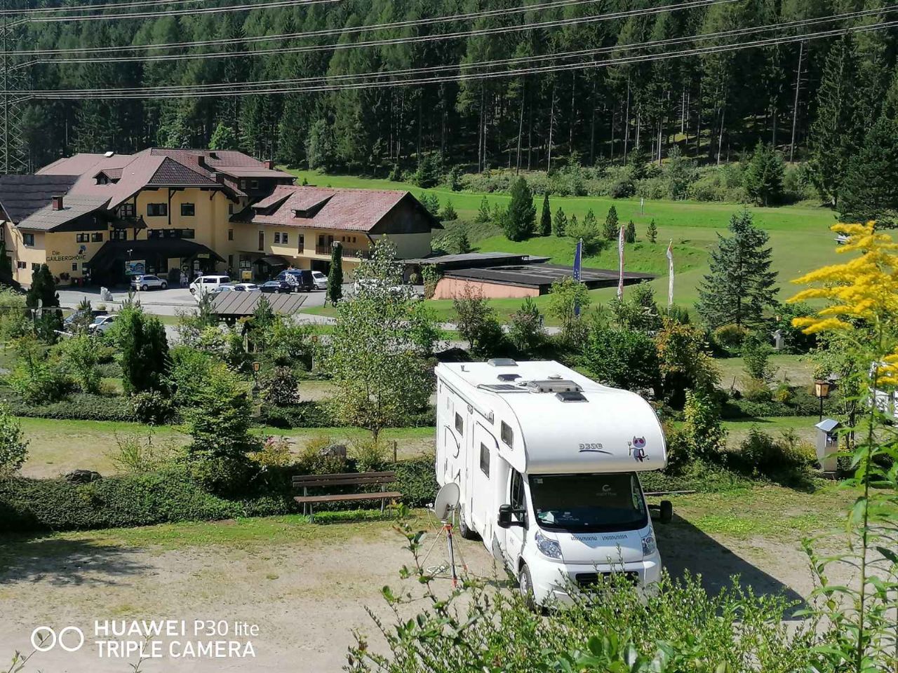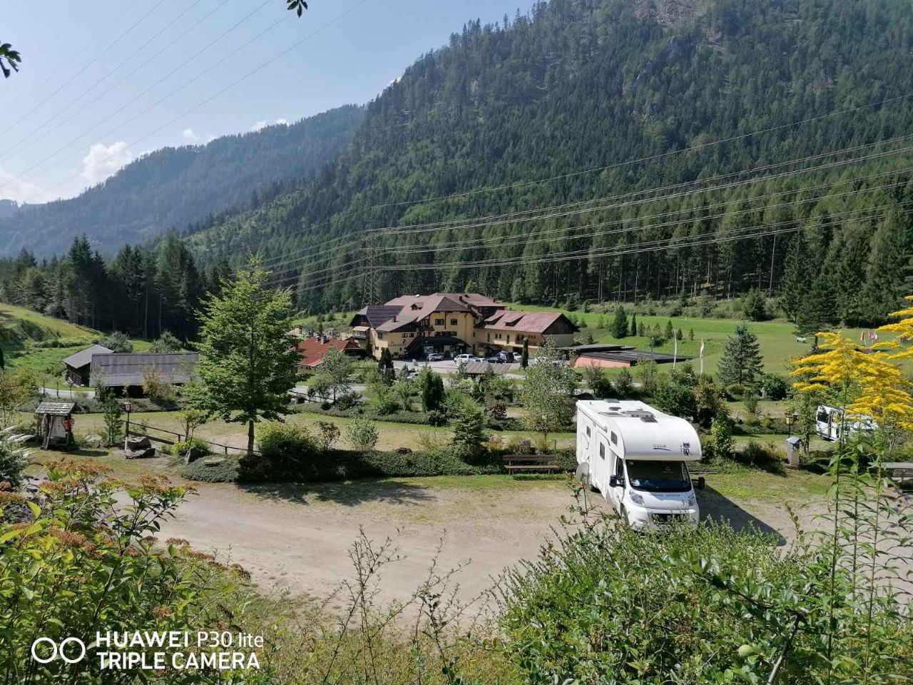 Sulla strada che conduce in Italia (passo di Monte Croce Carnico) area a pagamento con acqua, elettricità, scarico, piazzole ampie con panche e tavolini. Gestita direttamente dall'hotel che si trova di fronte.