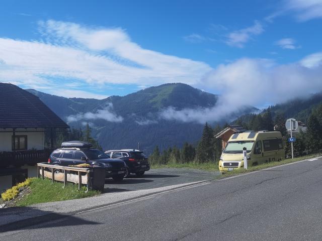 Piccola area attrezzata all'esterno di una struttura turistica, vicina alla funivia, capienza per 3-4 camper.