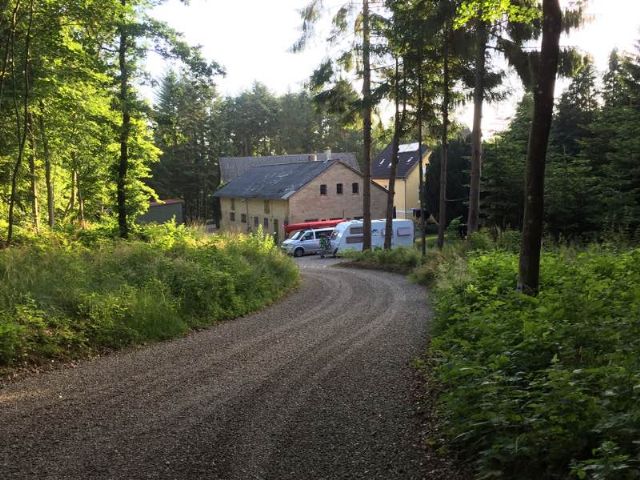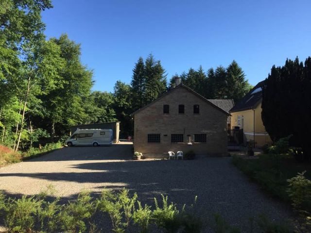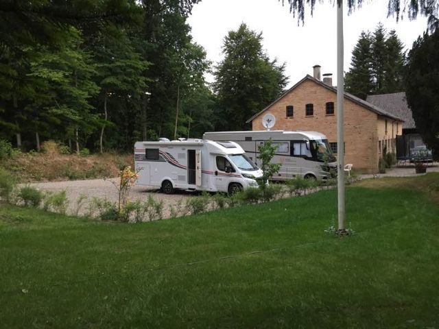 Area attrezzata con circa 12 posti per camper e caravan, servizi igienici, doccia (a pagamento), lavatrice e asciugatrice (gettoni), carico acqua, carico acqua, scarico grigie e cassetta WC chimico, connessione elettrica con spina CE sul fienile dell'edificio e nel garage.