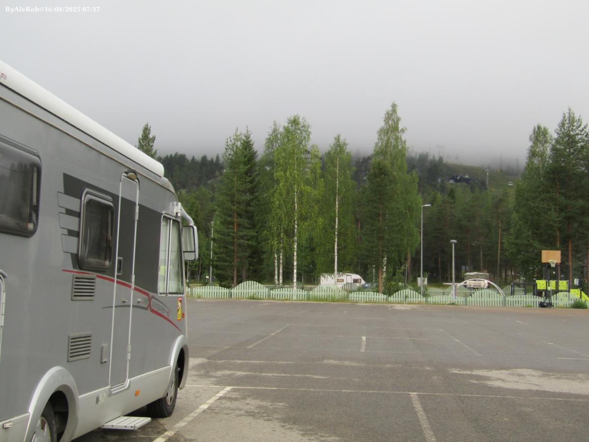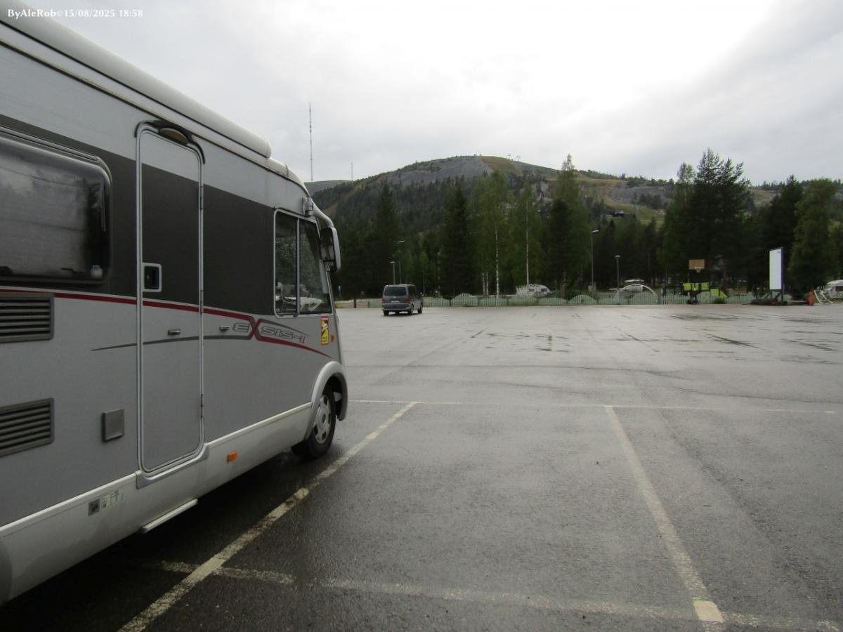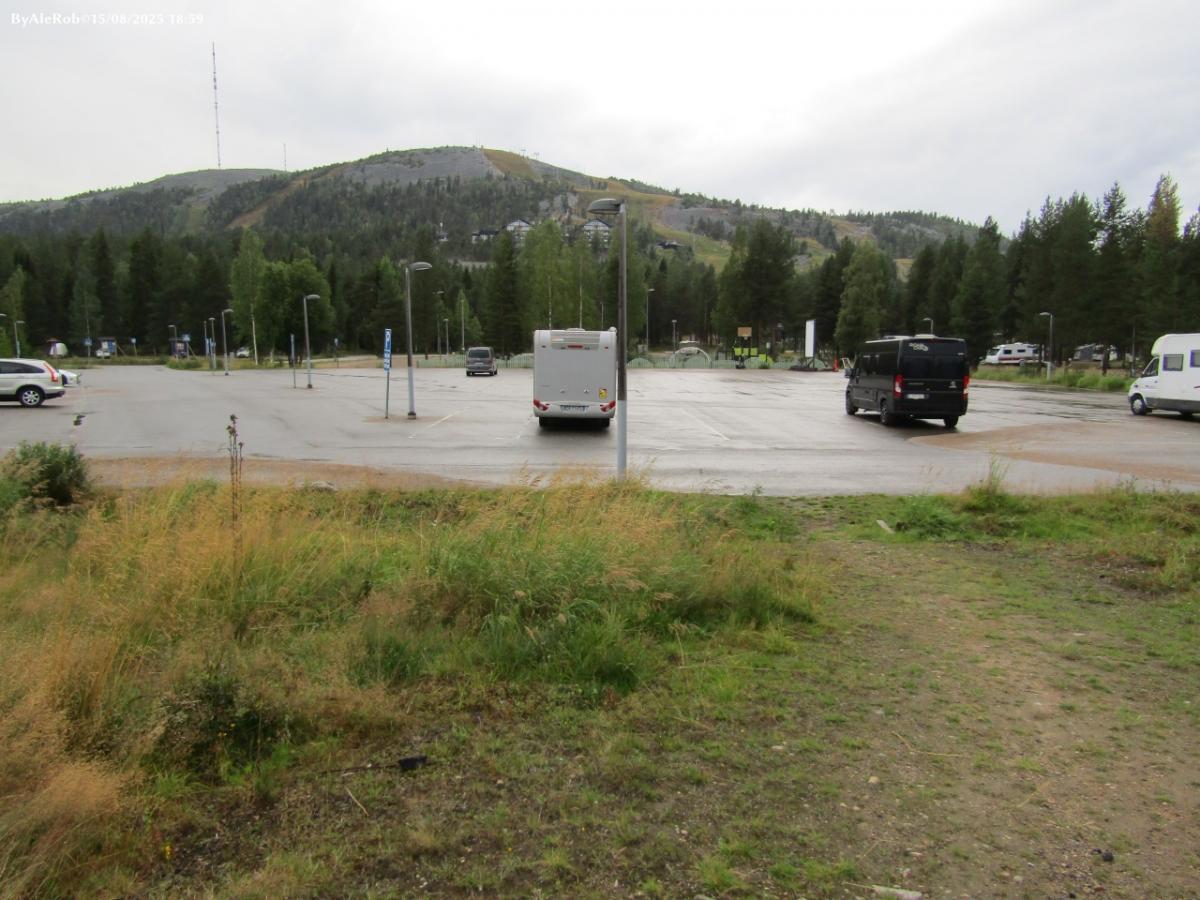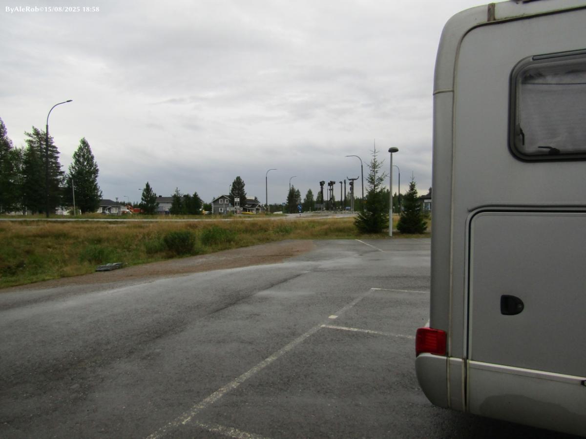 In Lapponia, vicino a campeggio e alcuni servizi commerciali, parcheggio asfaltato gratuito, illuminato, in pendenza. Nessun servizio per camper e divieti alla sosta e al pernottamento.