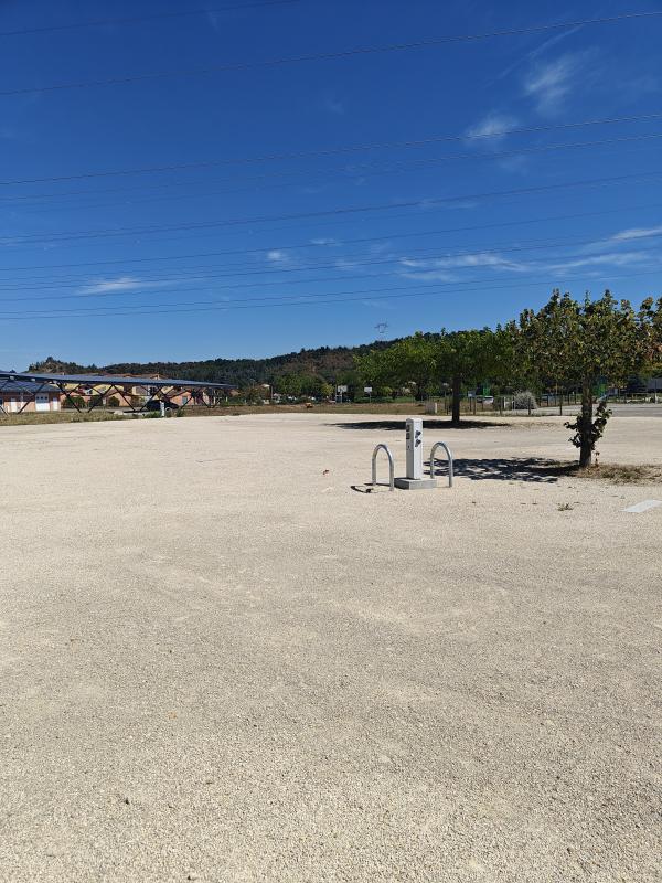 A 1,5 km dal centro, area sosta videosorvegliata del circuito Camping-Car Park, sbarra d'accesso e pagamento automatizzato, dotata di 30 piazzole delimitate su ghiaia, allacciamento elettrico, servizi igienici, carico/scarico, wifi.