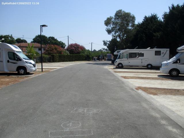 Di fronte al cimitero e a fianco del Camping du Lac de Cazaux proprietario dell'area attrezzata dotata di piazzole delimitate e poco ombreggiate, colonnina per camper service.