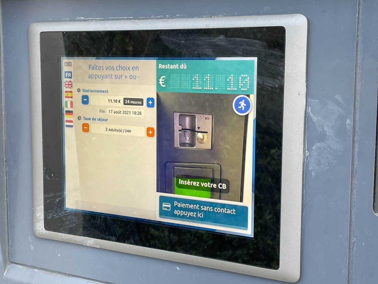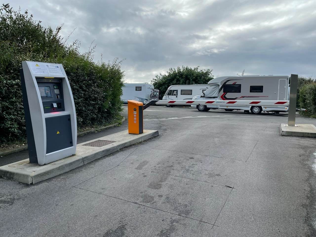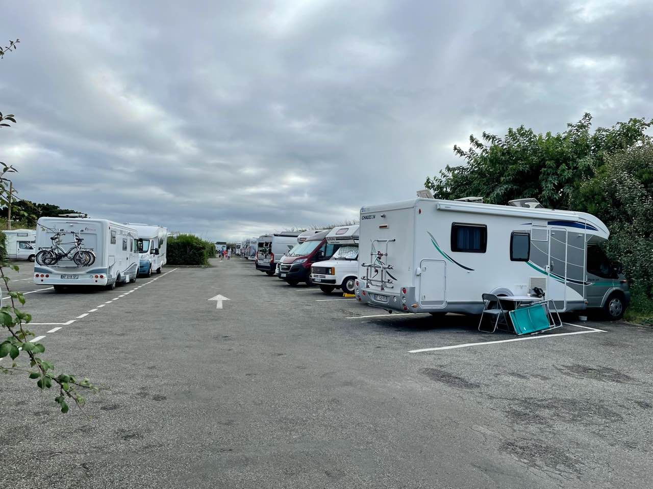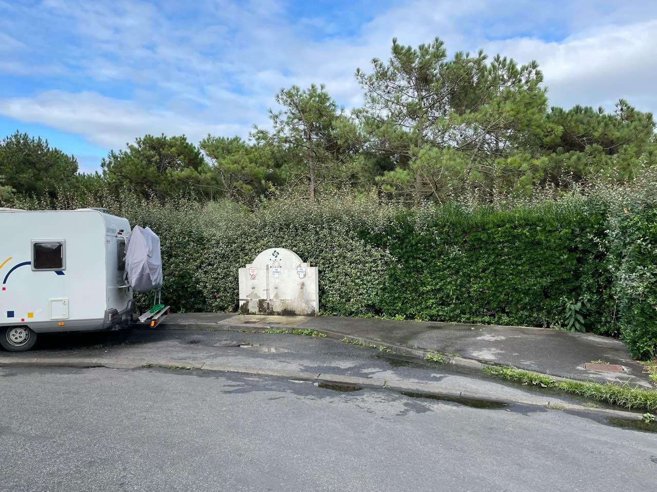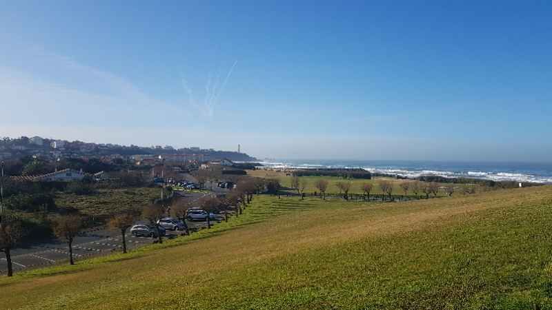 Vicina alla spiaggia e al centro di Biarritz, area a pagamento con parchimetro, leggermente in pendenza, assolata, con camper service.