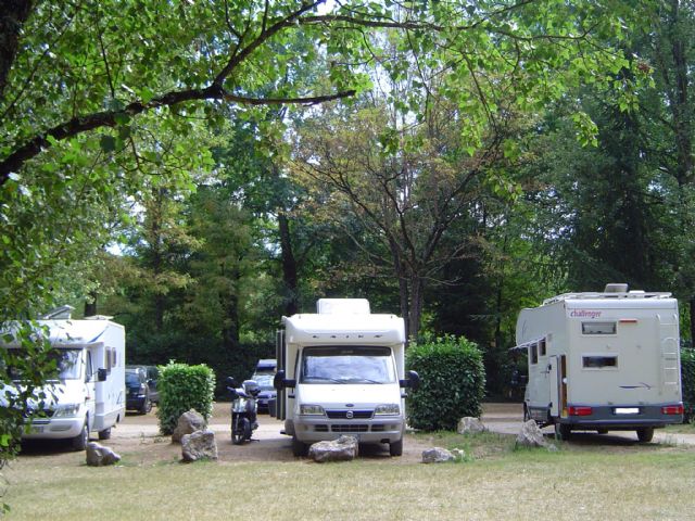 Segnalato subito dopo il camping La Plage, sterrato, pianeggiante, con ombra, in riva al fiume, 15 posti tra delimitati e liberi, vi posteggiano anche le auto, scarico gratuito, acqua ed elettricità a pagamento.