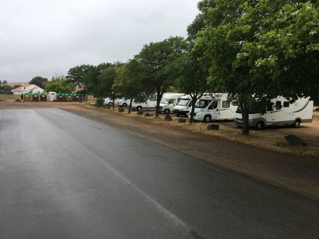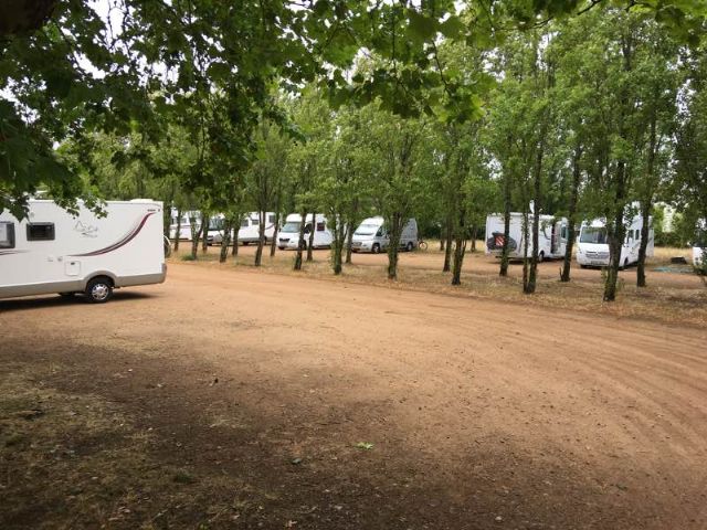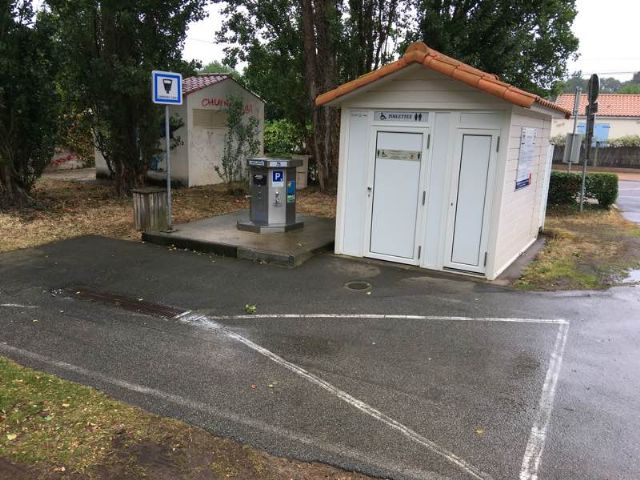 Lungo la D4 A, parcheggio riservato ai camper, segnalato, su sterrato, molto ombreggiato, stalli non delineati, circa 24 posti, livellato. Con blocco toilette e colonnina per carico e scarico a pagamento. Sosta a pagamento con tassa di soggiorno.