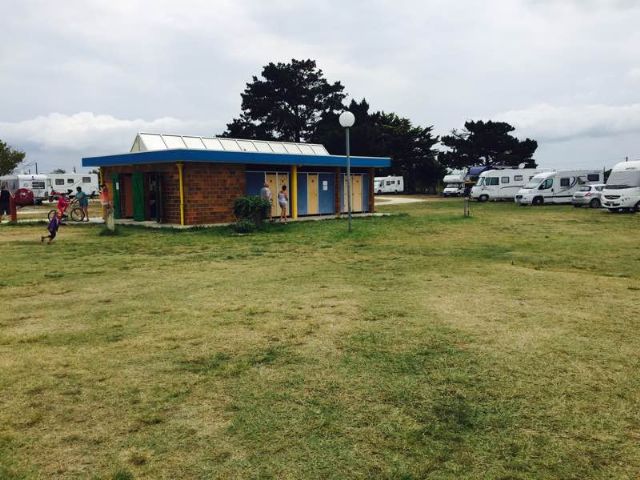 Area municipale per 95 camper sul mare, su terreno erboso, con ampie piazzole.