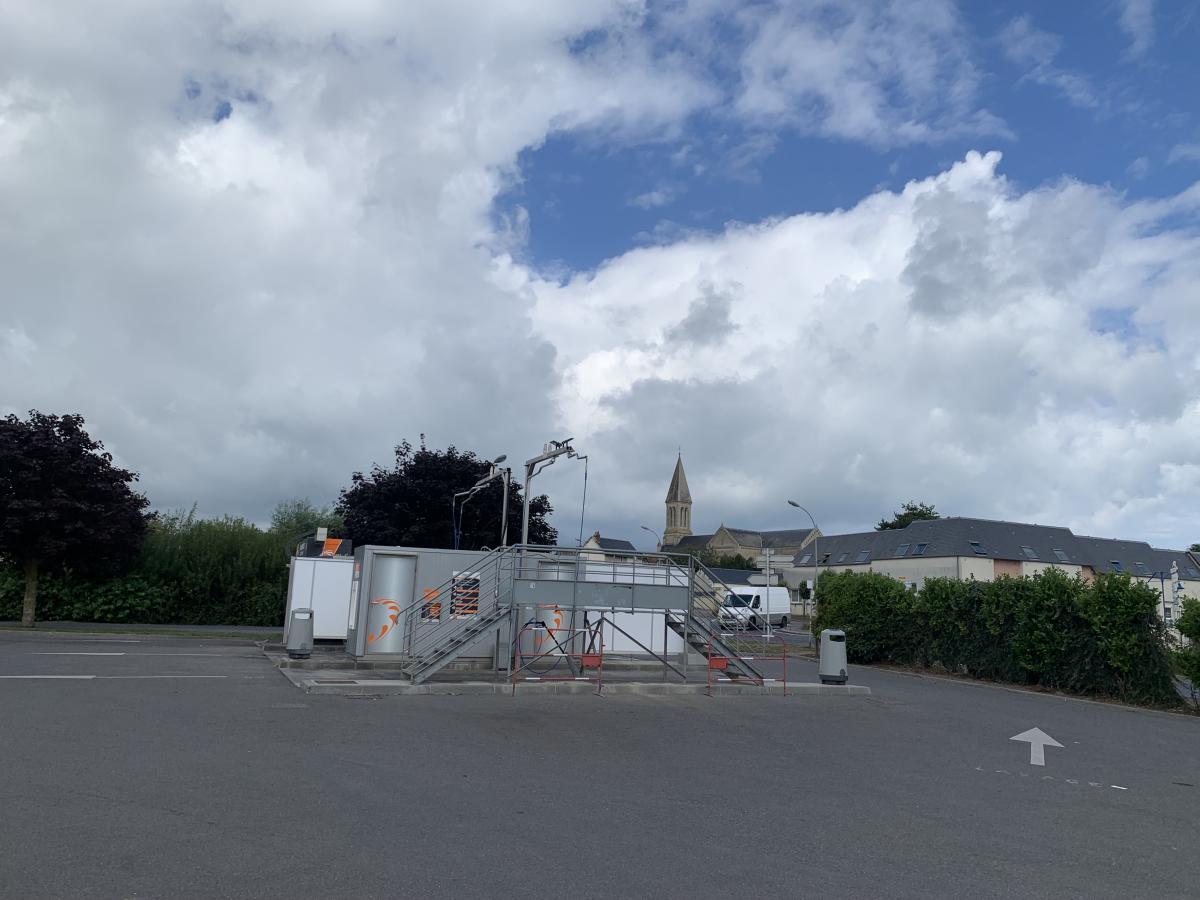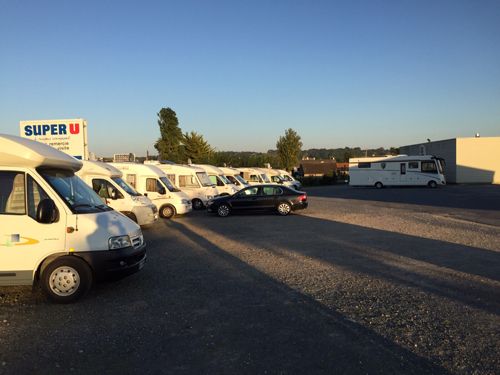 Livellata, su asfalto, 4 posti, camper service ed elettricità, area privata del supermercato Super U.