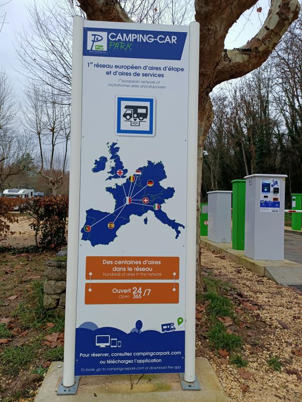 L’area sosta fa parte del circuito Camping-Car Park e bisogna fare la tessera Pass’Etapes € 5 + € 10,50 per l’area sosta con C/S e luce + € 1 per la tassa di soggiorno. Si fa tutto alla macchinetta all’entrata, davanti alla sbarra. L’area si trova in una zona un po’ isolata, tra gli alberi, non molto illuminata, ma siccome c’erano diversi altri camper ci siamo sentiti tranquilli.