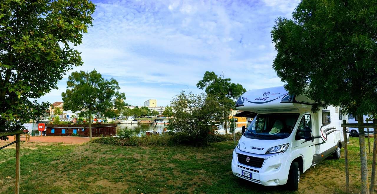 A 2 km dal centro, in riva al fiume e al porto, area con 10 posti su stabilizzato, allacciamento elettrico, camper service colonnina Flot Bleu (a pagamento), WC al porto (chiedere chiave alla Capitaneria).