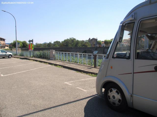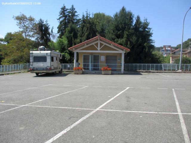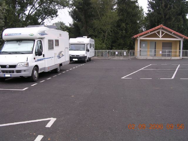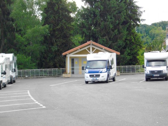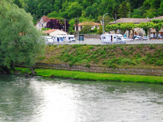 Piccolo parcheggio con una decina di posti, in riva al fiume Garonna, asfaltato, scarico e carico acqua, bagni pubblici.