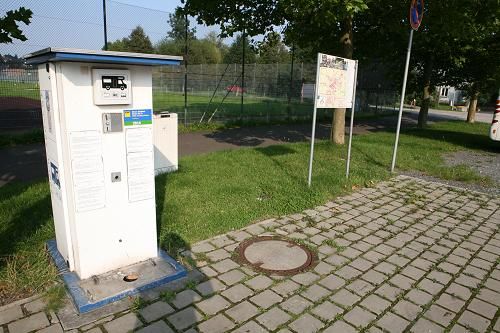 Vicina al centro (500 metri) e la supermercato (800 metri) in piano su mattonato e prato, parte con ombra, 10 posti senza delimitazioni.