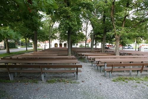 Soventi feste nellla stessa piazza, ristorante birreria giardino adiacente, prezzi modici.