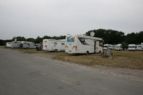 A poca distanza dl centro città, punto sosta pianeggiante su terra battuta, senza ombra, a pagamento tramite a macchinetta e tessera per utilizzo servizi: carico acqua, elettricità e accesso ai bagni.