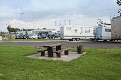 A 500 metri dal centro e dal supermercato, in piano, senza ombra, 20 posti senza delimitazioni