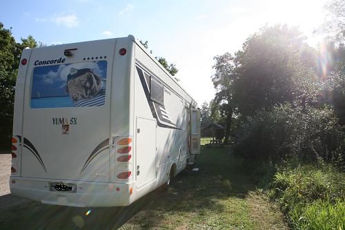 In piano, in parte con ombra, su terra battuta ed erba, 12 posti senza delimitazioni.