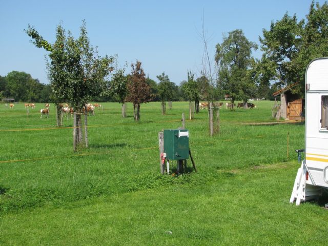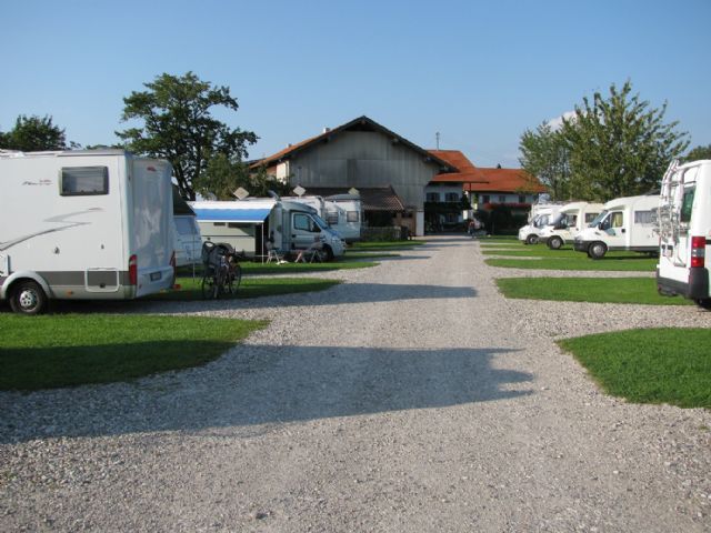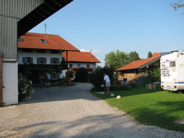 Area camper nel cortile di una fattoria, in mezzo alla campagna. Corrente, carico e scarico, piazzole su ghiaia e prato, doccia e wc. Alla mattina è possibile acquistare il latte appena munto dai proprietari. Situata a circa 4 km dal lago Chiemsee, raggiungibile in bici percorrendo strade secondarie in mezzo ai campi, quindi poco trafficate. Ottima base per visitare il Chiemsee per gli amanti di qualche km in bici.