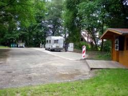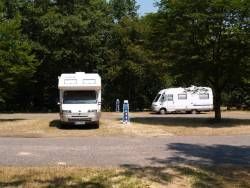 A 1 km dal centro, area sosta recintata situata in mezzo alla foresta, dispone di circa 50 posti ombreggiati, in piano e su erba, .