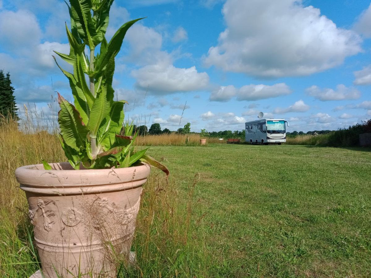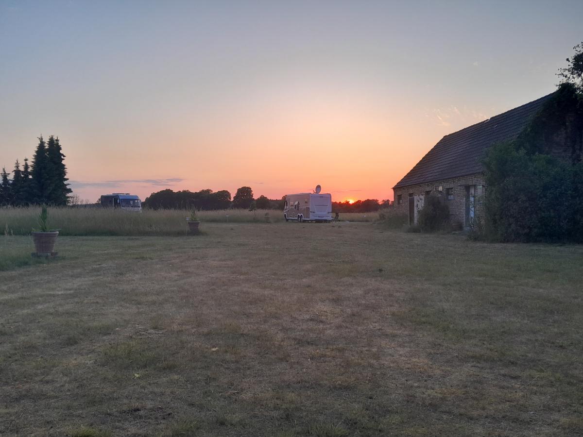 A 5 km dal villaggio (raggiungibile in bicicletta), punto sosta privato su prato, 3 piazzole con allacciamento elettrico da 16A, docce calde a pagamento, fredde gratuite (esterne).