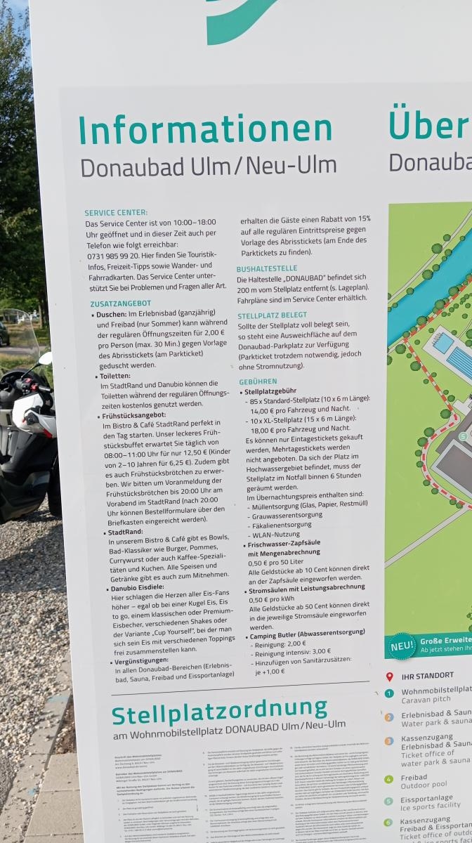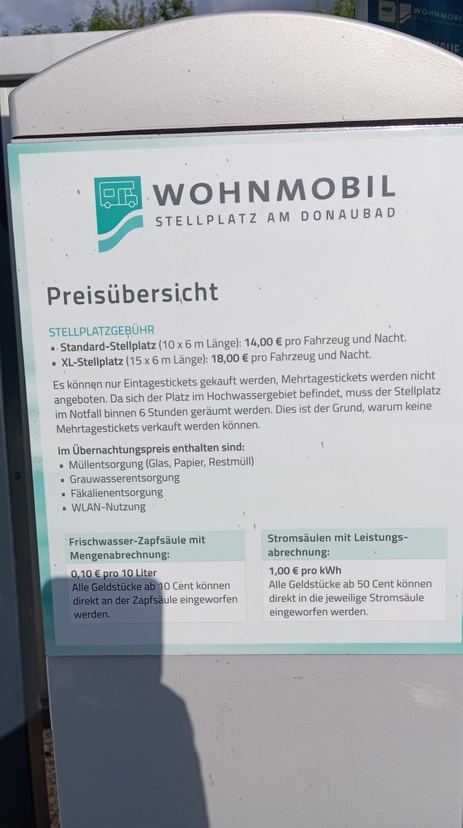 AVVISO PER I CAMPERISTI CHE PARCHEGGIANO NEL PARCHEGGIO ANTISTANTE L'AREA: il pagamento va fatto al check-out e alle macchinette situate all'interno del parcheggio (non in quelle dell'area di sosta). Cartelli poco chiari e solo in tedesco per questo tutti vanno a pagare nell'area sosta, visto che nelle immediate vicinanze non ce ne sono. Girate in direzione del palazzo del ghiaccio e li troverete. Se non fate check-out vi sarà recapitata una multa di 45 euro.