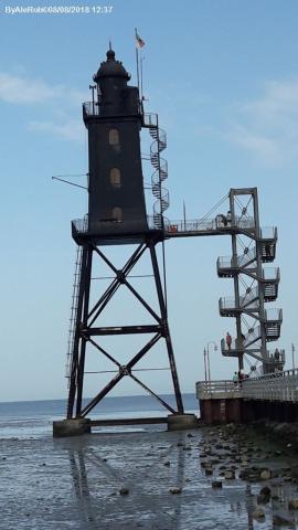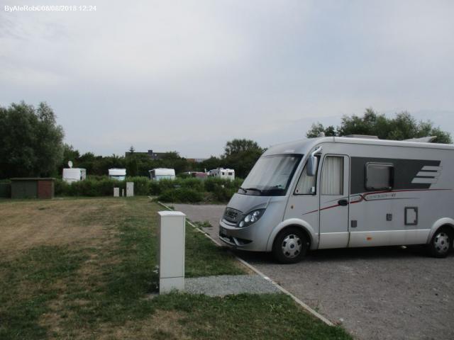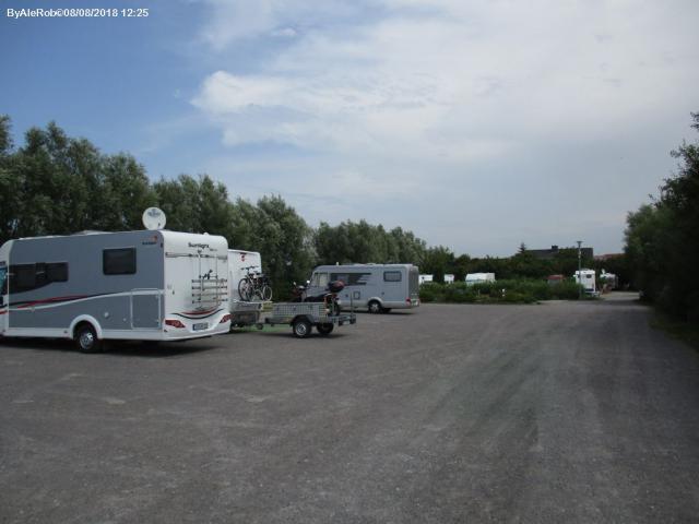 Alle spalle della diga, della spiaggia e del faro nero, area sosta attrezzata gestita dal campeggio adiacente, con servizi di carico, scarico e allaccio elettrico.