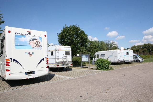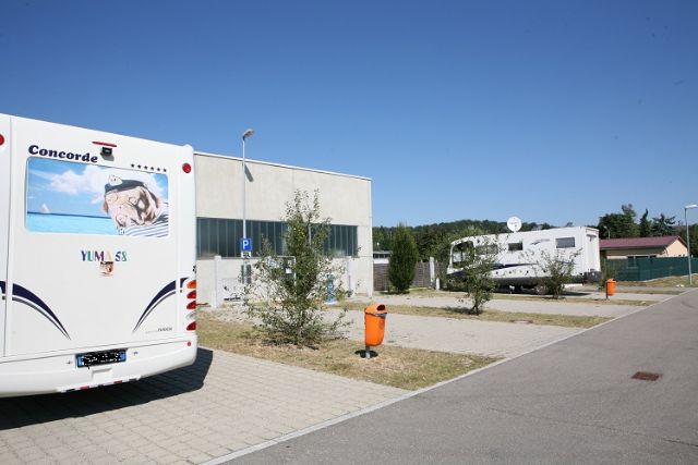 Area in piano su mattonato, asfalto e prato, senza ombra, 8 posti senza delimitazioni. Adiacente il centro città, supermercato a 700 metri.