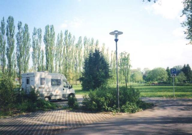 Vicino al centro e al supermercato, punto sosta camper a pagamento (monete) tramite macchinetta, 45 posti parzialmente ombreggiati, su autobloccanti.