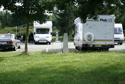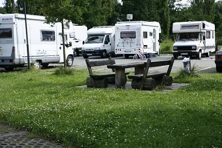 Sono presenti colonnine elettricità, carico acqua, scarico WC chimico, tavolini picnic.