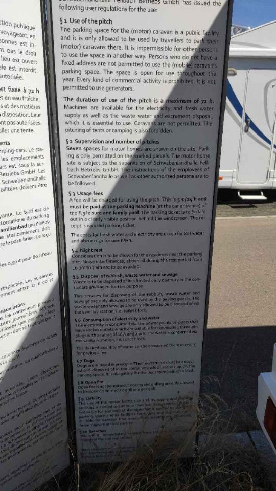 Ticket presso macchinetta all'ingresso del parcheggio con le sbarre delle auto (premere tasto "Wohnmobile"), pagamento con moneta e banconote (dà il resto).