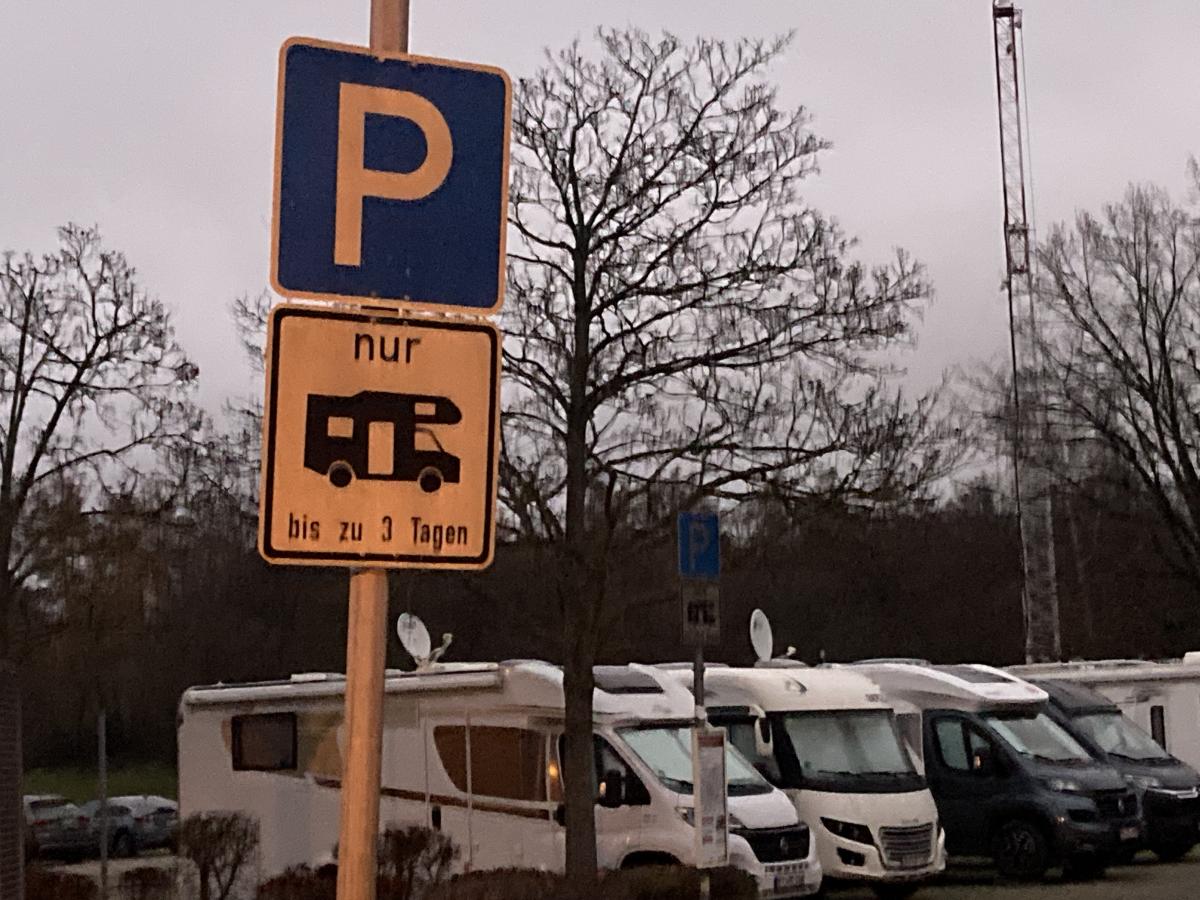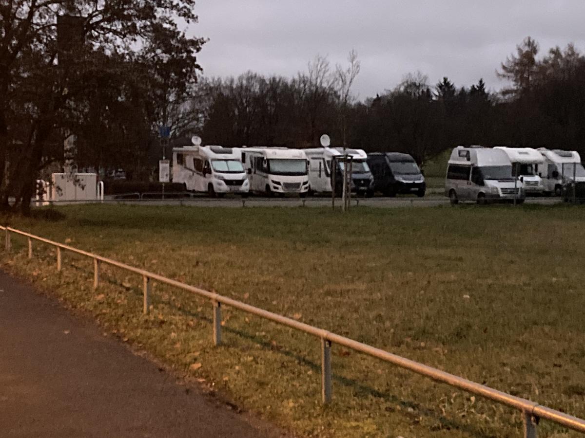 A circa 3,2 km dal centro, vicina al parco del popolo, parcheggio con zona riservata camper 10 posti in piano, senza ombra e servizi eccetto bagni pubblici. Permanenza max di 72 ore.