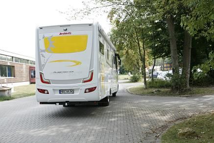 A 1,5 km dal centro, nel parco del castello di Paffendorf e adiacente ad una riserva naturale, punto sosta con 8 stalli delimitati, in piano su mattonato, in parte con ombra, senza servizi.