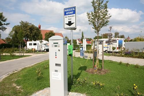 In piano su asfalto e mattonato, ombra scarsa, vicino al centro città , supermercato a 1 km, 24 posti con delimitazioni, é una "Top platz".