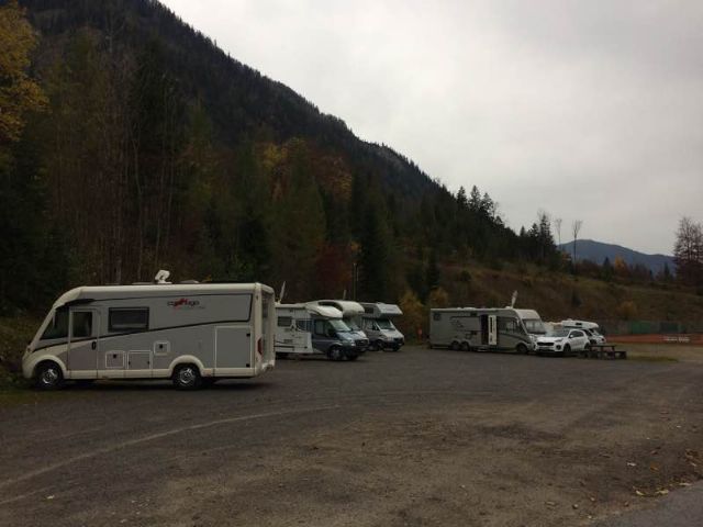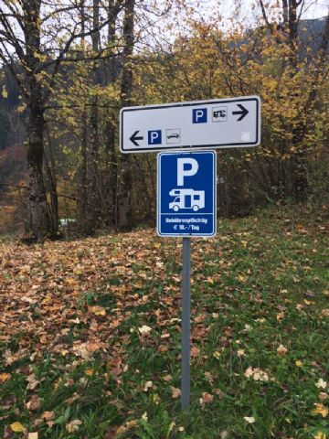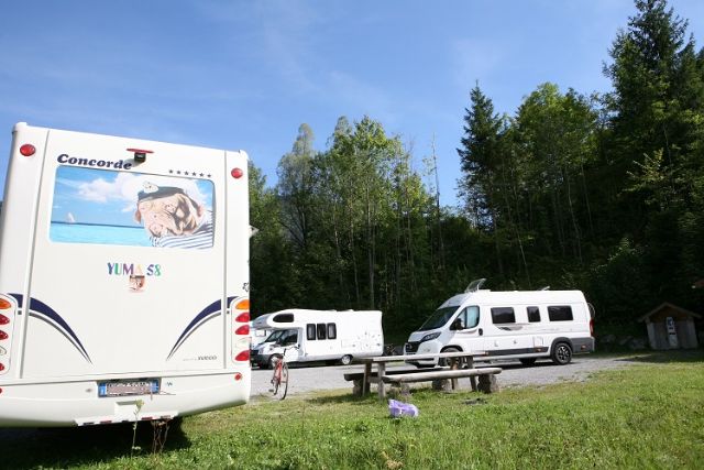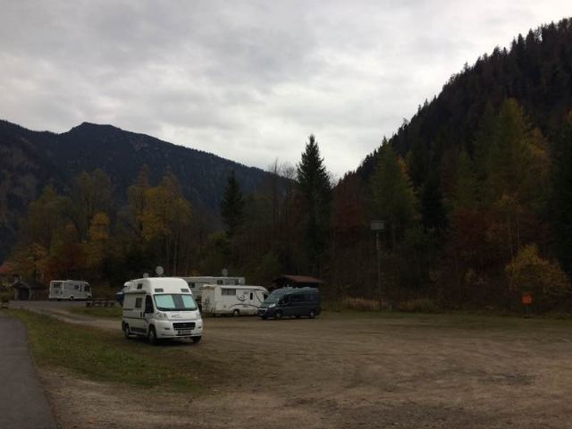 Area a terrazzamenti con 20 posti senza delimitazioni, in piano, su prato e in parte con ombra, sotto le alpi bavaresi, vicina al centro (500 m) e al supermercato.