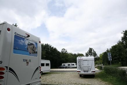 Area pianeggiante e in parte con ombra, vicina al lago, 22 posti senza delimitazioni, camper service e allacciamento elettrico. Centro e supermercato a 500 metri.