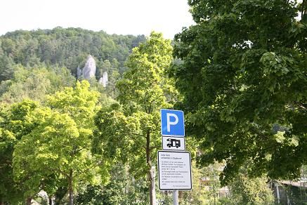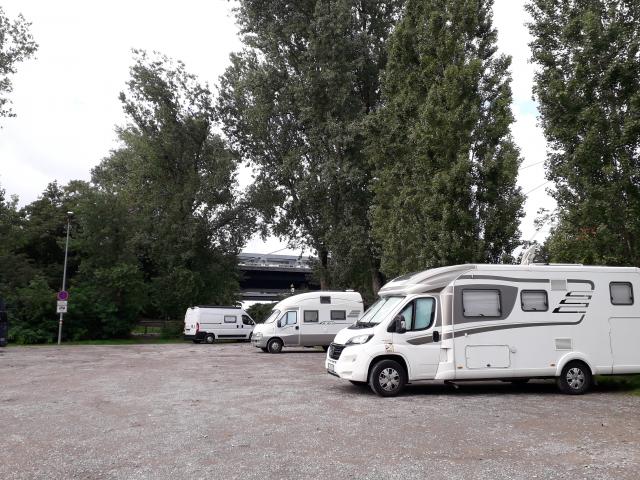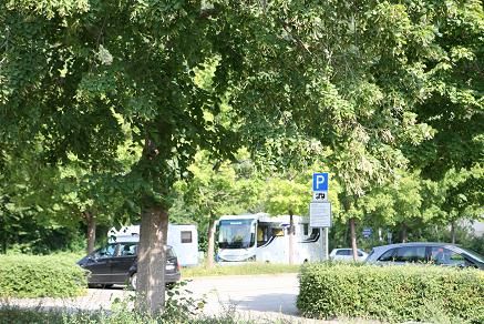 Solo sosta, in piano, su asfalto, il centro città è 2,5 km come anche il supermercato, 15 posti con ombra e senza delimitazioni.