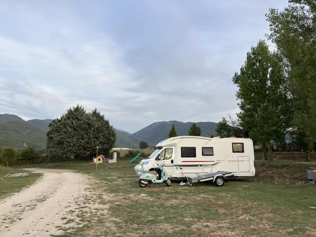 Vicina casello Carsoli/Oricola A24, la struttura dispone di 14 piazzole con carico acqua, allaccio elettrico, illuminazione, camper service usufruibile previo accordo con il gestore.