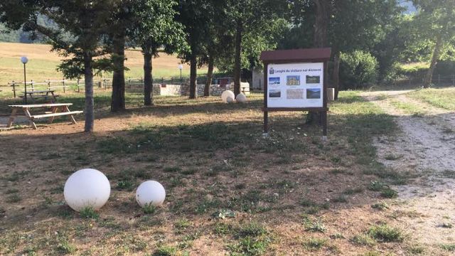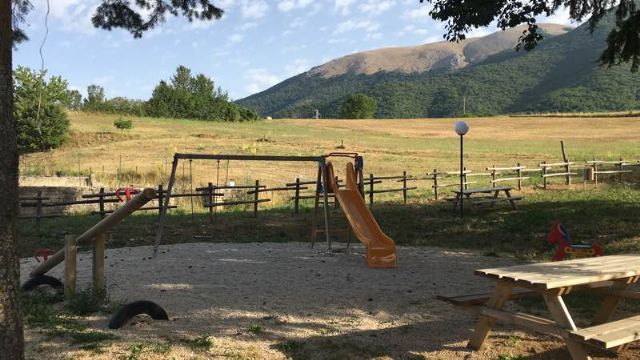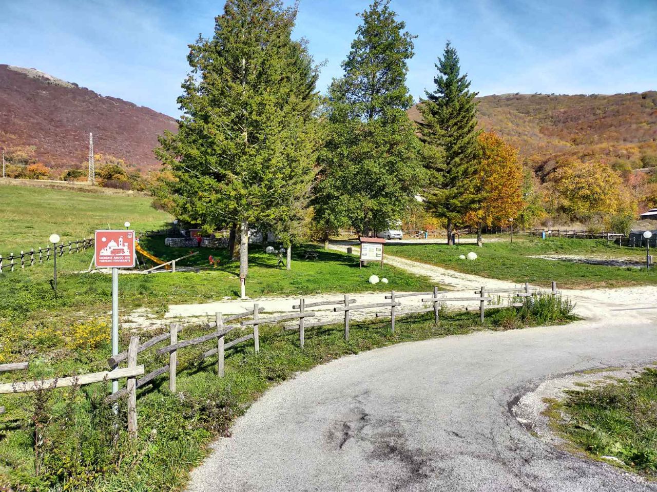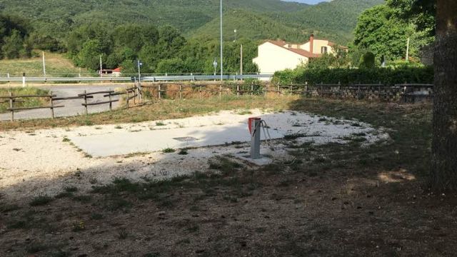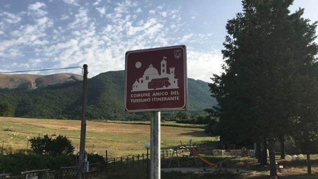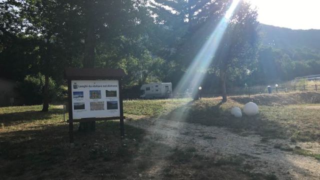 Al confine con la provincia di Rieti, a 700 m dal borgo, area sosta comunale, ombreggiata, gratuita, con una decina di posti, carico e scarico, colonnine allaccio elettrico, zona picnic e BBQ, giochi per bambini.