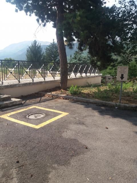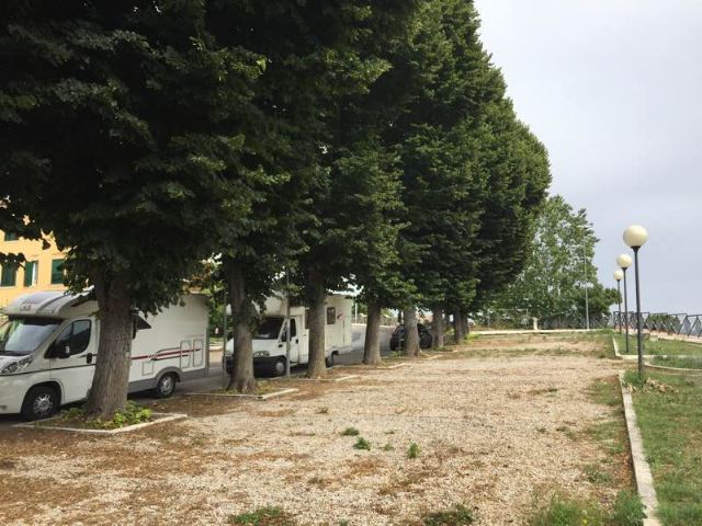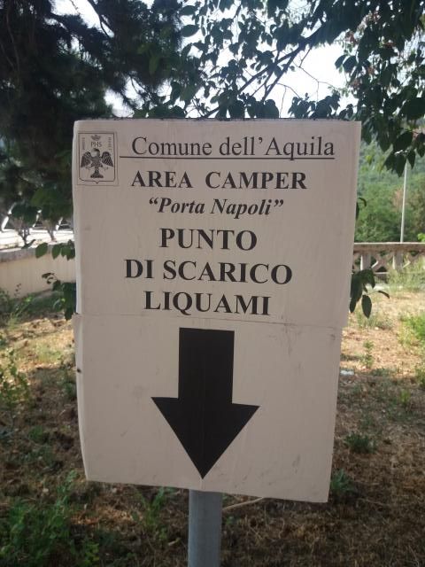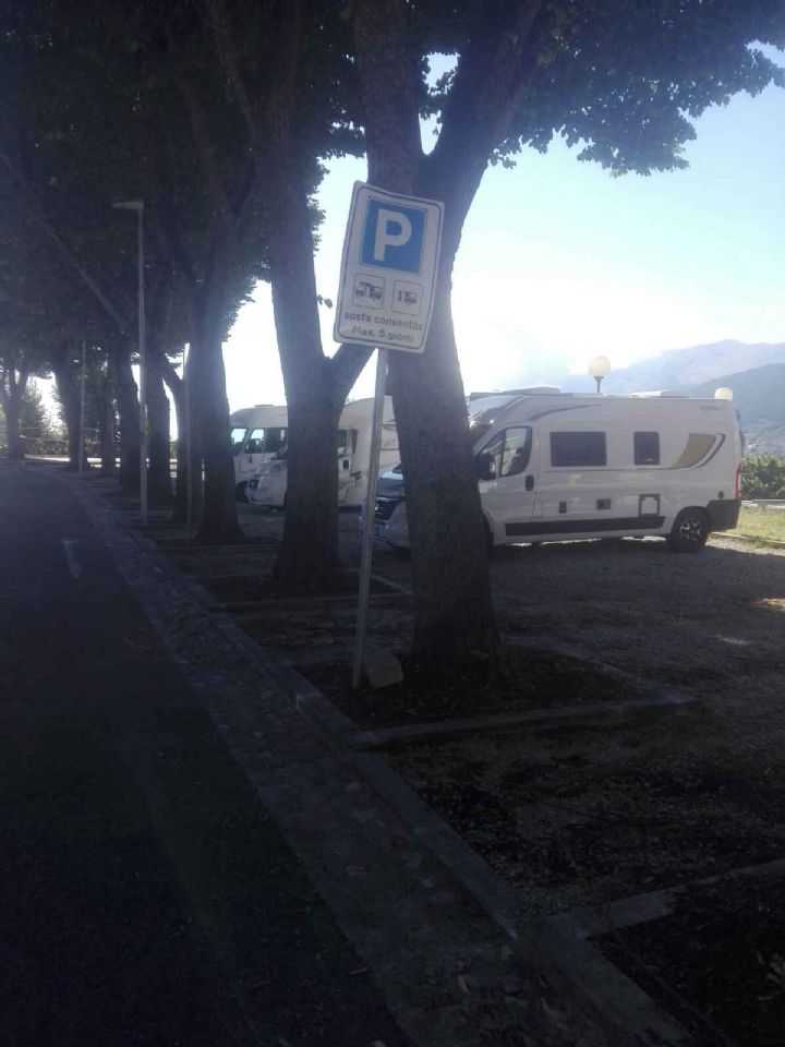 Presso Santa Maria a Collemaggio e Porta Napoli, punto sosta comunale, con vista panoramica, 10 posti ombreggiati, carico/scarico.