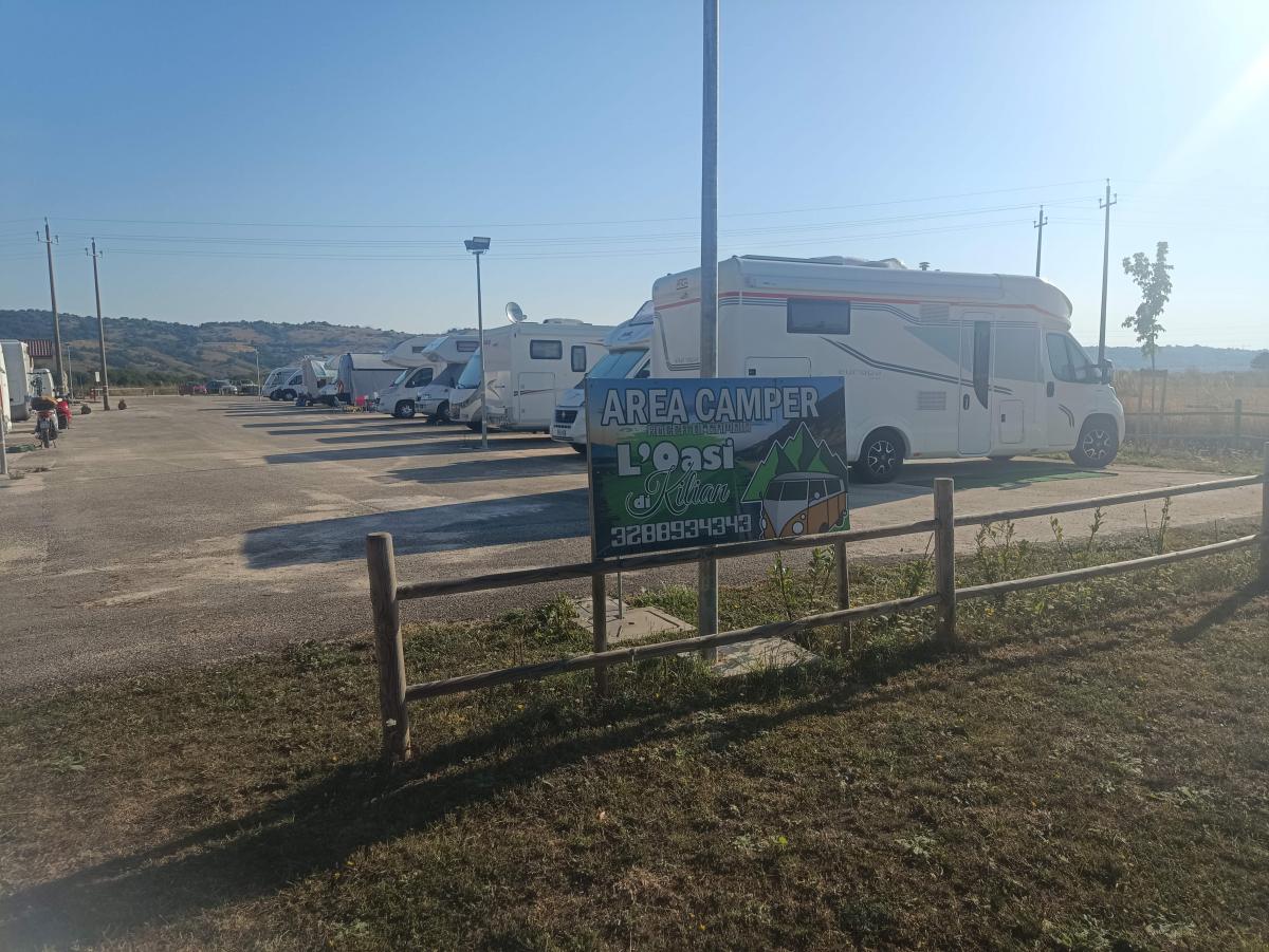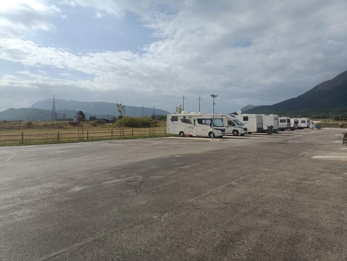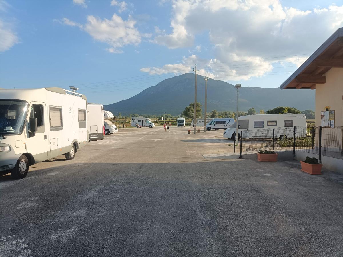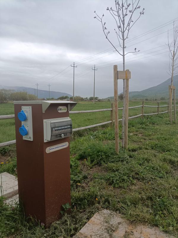 A circa 1 km dal paese di Rocca di Cambio e a 3 km dagli impianti di sci di Campo Felice, area sosta recintata con accesso automatizzato, video sorvegliata (ancora da ultimare) con 28 piazzole su asfalto, allacciamento elettrico 6A, camper service, area picnic/relax, barbecue, area cani.