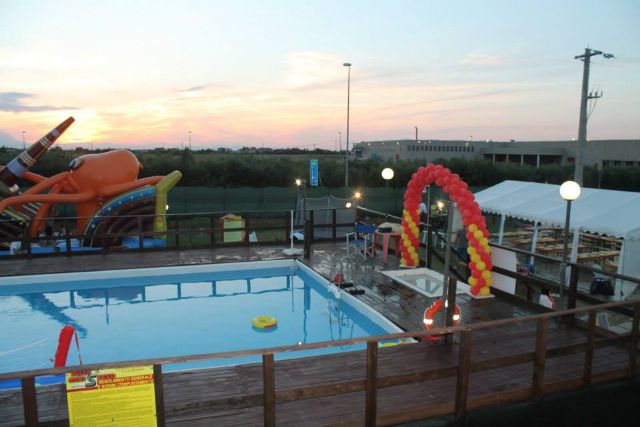 Ampio piazzale attrezzato con corrente e acqua presso impianto sportivo A.S.D. Mini Speed con piscina, spogliatoi e docce,bar e ristorante, area relax, area giochi, pista per go-kart, minimoto, minimotard.
