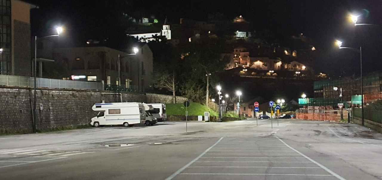 Parcheggio molto comodo per visitare il centro storico di Maratea. Di giorno è gratuito, non ho sostato di notte. Il carico acqua non l'ho visto.