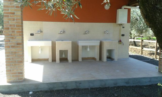 L'area camper è dotata di servizi igienici e docce, carico acqua e scarico acque reflue, allaccio elettrico.