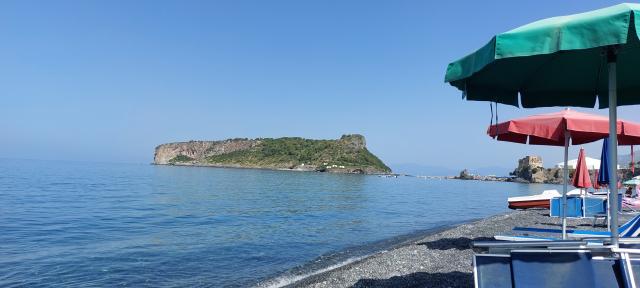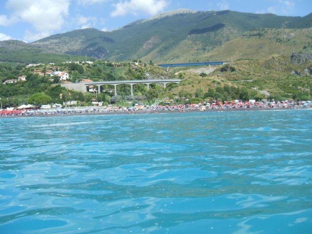 4 km in bici con pista ciclabile dal centro di Praia, uscire dalla SS 18 a Praia Sud, Grotte Arcomagno, isola di Dino, spiaggia di San Nicola Arcella.