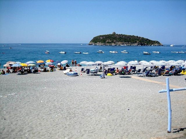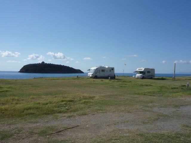Di fronte all'isola di Cirella, servizi, elettricità, manto erboso, servizio navetta a pagamento.