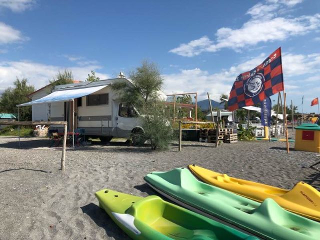 Nel periodo di ferragosto il gestore passa tra i camper a chiedere 5€ per vedere i fuochi e il falò sulla spiaggia...