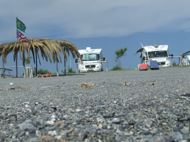 A 600 m dopo il centro abitato sul mare, area sosta custodita presso il lido, illuminata, non ombreggiata con spiaggia libera e a pagamento.